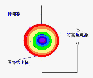 “棒電極”在球心O對“圓環(huán)狀電極”“超短時間內(nèi)的高能”(超高壓)充電、放電,可以產(chǎn)生“七彩圓盤狀閃電”,簡稱為“七彩閃電”(圖8、9)。[7]