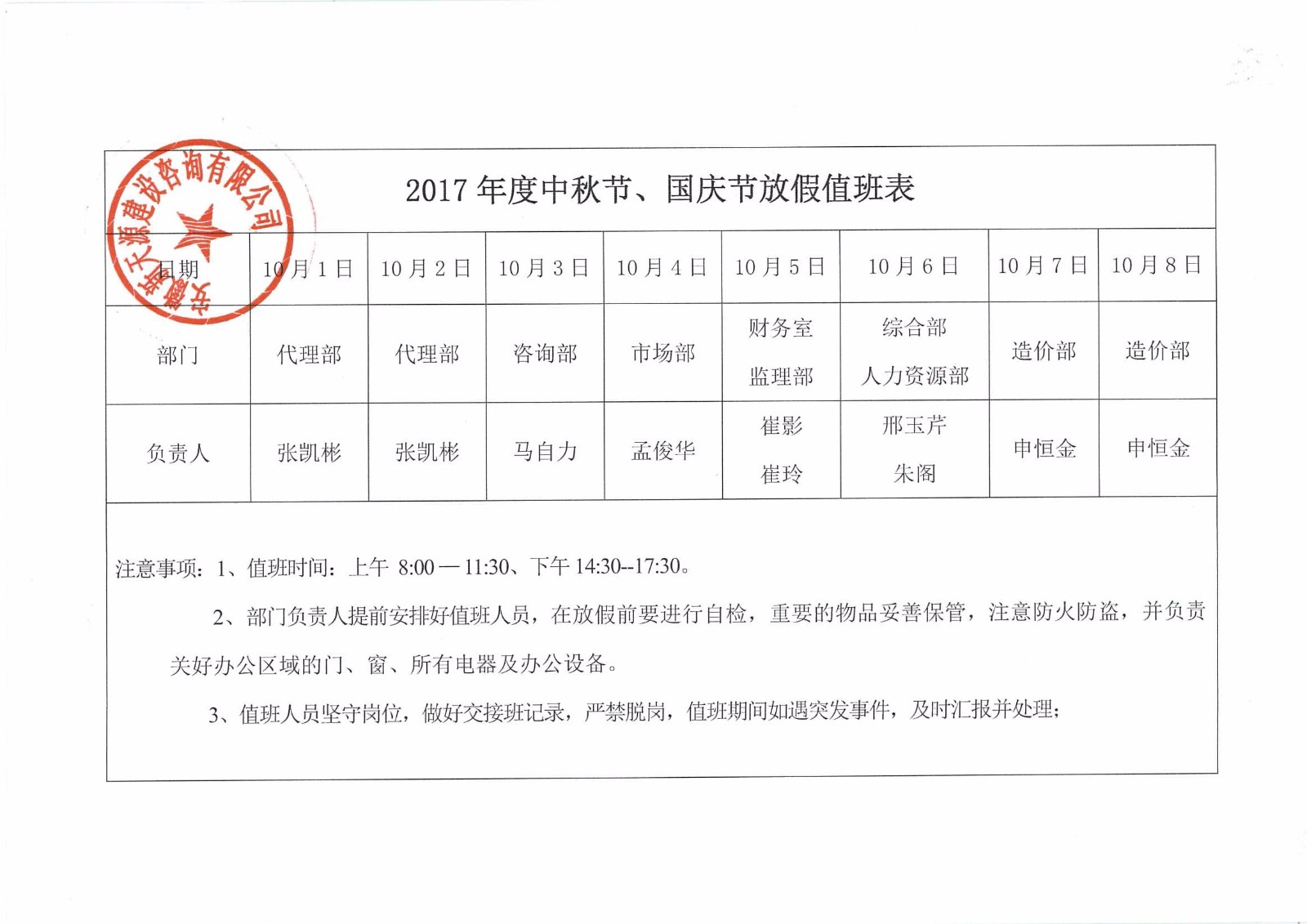 2017年度中秋節(jié)、國慶節(jié)放假通知